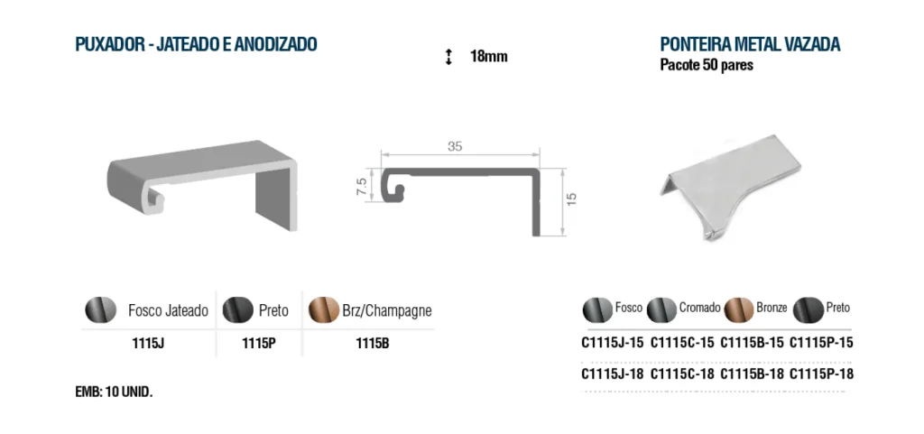 / Puxador – Jateado e Anodizado 1115J (18mm)