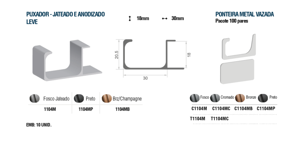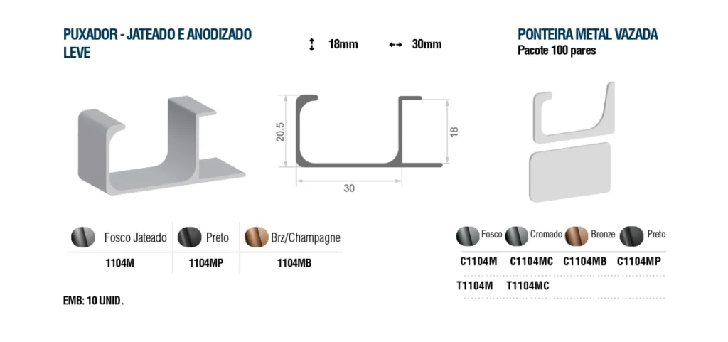 / Puxador – Jateado e Anodizado Leve 1104M (30x18mm)